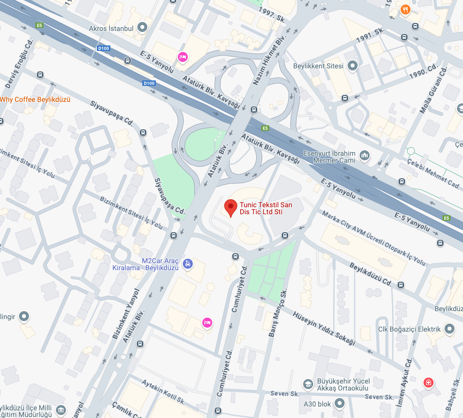 Im Detail sehenTunic San Dis Tic Ltd Sti.Büyükşehir Mh Cumhuriyet Cad No 1Ekinoks RezidansE1 Blok D 8434520 Beylikdüzü / Istanbul/ Türkiye